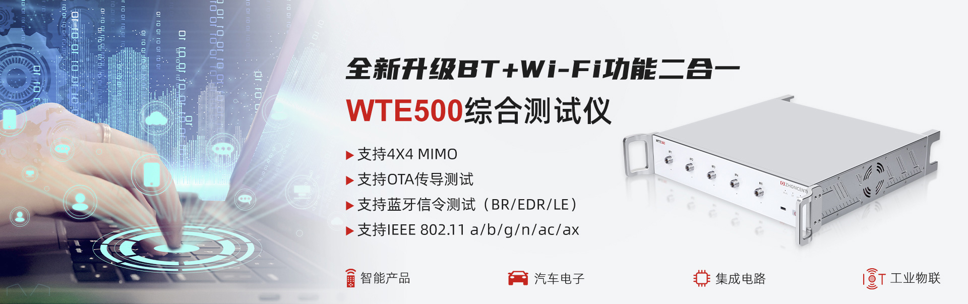 WTE800無(wú)線信令綜合測(cè)試儀(以下簡(jiǎn)稱“WTE800”)是由深圳市中承科技有限公司自主研發(fā)和生產(chǎn),可用于Wi-Fi設(shè)備在研發(fā)、生產(chǎn)、認(rèn)證等環(huán)節(jié)測(cè)試的多功能綜合測(cè)試儀,通過(guò)配置客戶端或AP端參數(shù),真實(shí)建立Wi-Fi網(wǎng)絡(luò)呼叫連接,自動(dòng)實(shí)現(xiàn)被測(cè)件的各項(xiàng)射頻與協(xié)議性能指標(biāo)精準(zhǔn)測(cè)試。