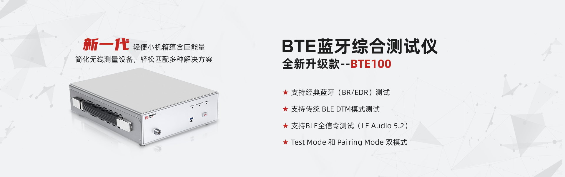 支持經(jīng)典藍(lán)牙(BR / EDR)測(cè)試;支持低功耗藍(lán)牙(BLE 4.2 / 5.0 / 5.1/5.2)測(cè)試